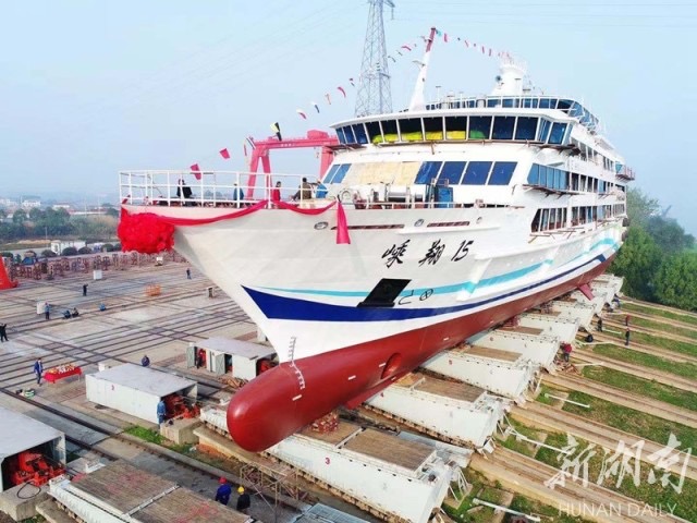 據(jù)悉,“嵊翔”號(hào)游船總長(zhǎng)81.29米,型寬14.30米,型深7.40米,設(shè)計(jì)吃水深度3.40米,空船自重2989噸,額定載客量820客位,續(xù)航力70小時(shí),雷達(dá)、通信等導(dǎo)航設(shè)備是按沿??古_(tái)風(fēng)安全系數(shù)最先進(jìn)的游船設(shè)計(jì)建造,具有抗9級(jí)臺(tái)風(fēng)能力?!搬酉琛碧?hào)游船是湖南省目前制造的船身長(zhǎng)度最長(zhǎng),載客量最多的游船。