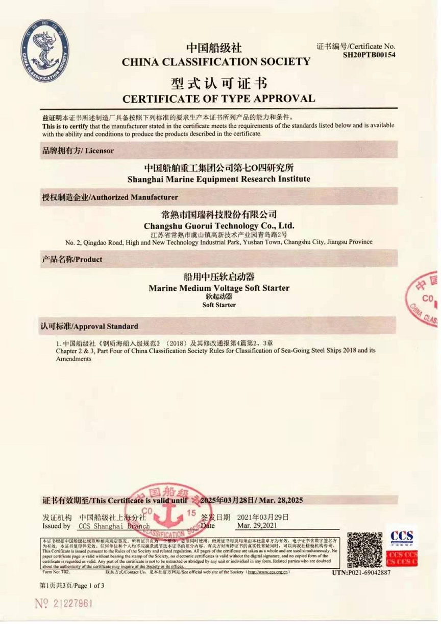近日,由中船集團(tuán)704所與常熟市國(guó)瑞科技股份公司聯(lián)合研發(fā)的6.6KV/3MW船用中壓軟起動(dòng)器獲得中國(guó)船級(jí)社(CCS)型式認(rèn)可證書。這是國(guó)產(chǎn)自主品牌船用軟啟動(dòng)器首次獲得CCS船級(jí)社型式認(rèn)可證書。此前此類產(chǎn)品國(guó)際上只有以色列索控公司和美國(guó)羅克韋爾公司才能生產(chǎn)。